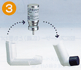 3.インタールエアロゾルの缶を専用アダプターにはめ込みます。