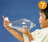 7.ファイソンエアーから口をはずし、約5秒間息を止めます。その後ゆっくりと息を吐き出します。再びファイソンエアーの吸い込み口を唇でくわえ、1回の噴霧で同様の吸入を2〜3回繰り返します。