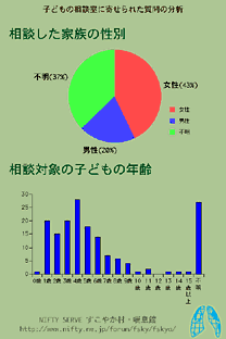 この会議室に質問を寄せる方の性別は、男性 19.9%、女性 42.8%、不明 37.3% でした。つまり母親からの質問が多いことが分かりました。