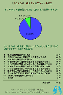 当フォーラムを利用されている方に電子会議室のやり取りについて感想を尋ねました。91%(84/92)の方からフォーラムに参加していて良かったと言う感想を頂きました。また、どの様な点で良かったのかを尋ねると、最も多かった回答が「喘息の最新知識が得られる」の 69 件、そして「質問すると専門医が回答してくれる」の 46件でした。