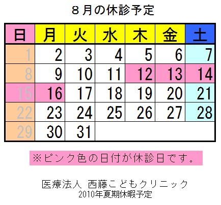 以下の日程を夏期休暇のために休診いたします。◇ 夏期休暇: