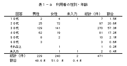 表1−a 利用者の性別・年齢