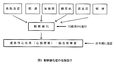 運動は、エネルギーを消費することによりコレステロールの産生を抑え、一方、善玉コレステロール(HDLコレステロール)を増加させ、動脈硬化を予防します。1時間運動した場合のエネルギー消費量は、ゆっくりした歩行で160kca1、ふつうの歩行で200kca1、急ぎの歩行で270kca1、エアロビクスやジャズダンスで300kca1、ゆっくりとした水泳で360kca1となります。この数値を見ると、スポーツジムヘ通わなくても、急ぎ歩行を心がければけっこうな運動療法をしていることになります。また運動療法の場合、楽しく継続できる運動を選ぶことが大切です。とくに小児の場合は、歩いて通学し、体育の時間や遊びの時間に十分に体を動かしていれば運動量は十分だと考えられます。 *血中のコレステロールこは、主にLDLコレステロールとHDLコレステロールがあります。先に述べたように、LDLコレステロールは血管壁に蓄積していくコレステロールであり、動脈硬化を促進させるはたらきがあります。また、HDLコレステロールは、血管壁に蓄積したコレステロールを取り除くはたらきをするコレステロールで、このため「善玉コレステロール」と呼ばれています。運動することによってこのHDLコレステロールが増加すると言われています。