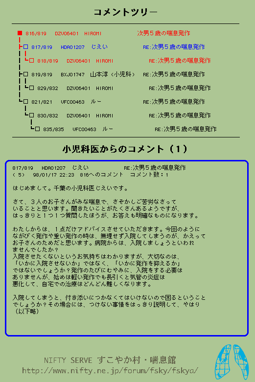 それに対して、小児科医でこのフォーラムにボランティアで参加されている自称"じえい"先生がコメントを寄せられています。
