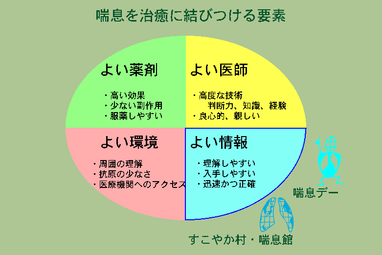 患者の治療にはいままでは優秀な医療行為の出来る医師と、有効な薬剤の使用について議論され続けました。そして最近では喘息患者を取り巻く環境にも目を向けられるようになりました。