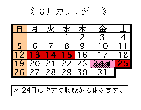 以下の日程を夏期休暇と学会出張のために休診いたします。◇ 夏期休暇: