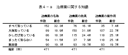 表4−a 治療薬に関する知識